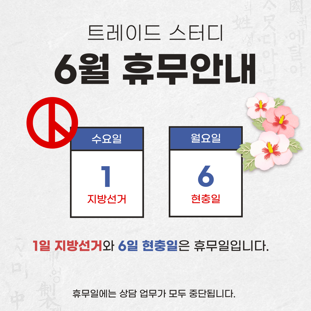 [공지] 트레이드스터디 6월 휴무 안내